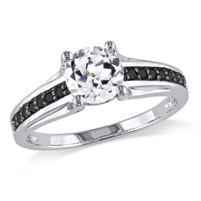 Stella Grace Lab Created White Sapphire And Black Diamond Engagement Ring In Sterling Silver 1 3 Ct T W