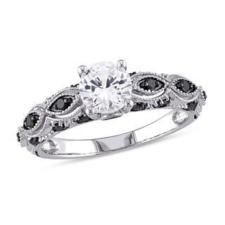 6 0mm Lab Created White Sapphire And 1 4 Ct T W Enhanced Black Diamond Engagement Ring In 10k White Gold Zales Outlet